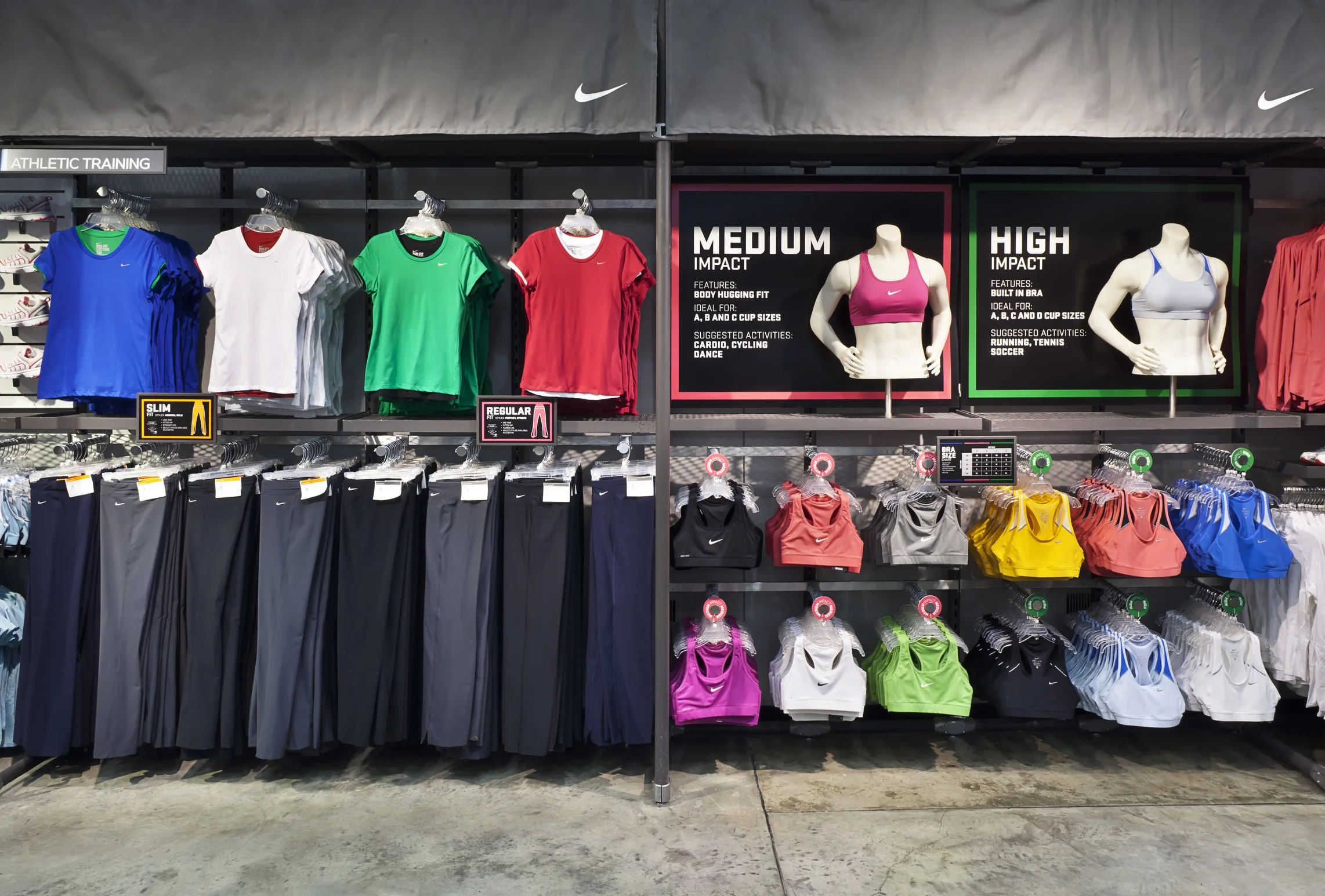 ABOVE Women's Bra Bar and Pant Fixture shop design for North America Nike Factory Stores
